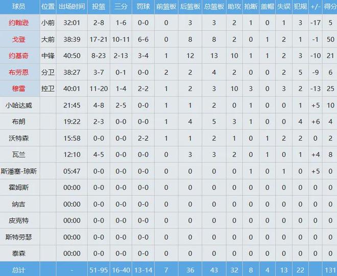 勇士全队数据如下: